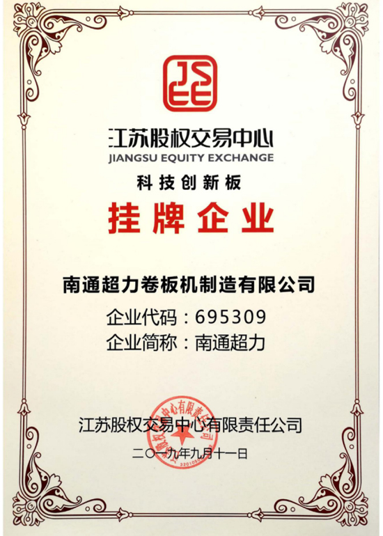 公司致力于卷板機(jī)技術(shù)創(chuàng)新與研發(fā)。擁有江蘇省(南通超力)數(shù)控卷板機(jī)工程技術(shù)研究中心,江蘇省企業(yè)研究生工作站,公司與南京航空航天大學(xué)、燕山大學(xué)、黎明化工研究院等高校和科研機(jī)構(gòu)建立了產(chǎn)學(xué)研合作關(guān)系,南京航空航天大學(xué)產(chǎn)學(xué)研基地,江蘇省鍛壓機(jī)械產(chǎn)品質(zhì)量監(jiān)督檢驗(yàn)中心合作單位。中國質(zhì)量認(rèn)證中心(CQC)ISO9001質(zhì)量管理體系認(rèn)證企業(yè),卷板機(jī)產(chǎn)品獲CE認(rèn)證。