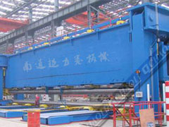 船用三輥對稱式卷板機結構型式為三輥對稱式,上輥在兩下輥中央對稱位置作垂直升降運動,通過液壓缸內的液壓油作用于活塞桿而獲得,為液壓傳動;通過特殊設計減速機分別帶動全滾動軸承的兩下輥作旋轉運動,為卷制板材提供扭矩;在下輥下部設有多組托輥,以提高下輥的剛度,并可進行垂直調節;在上輥的上部設有剛性大梁,在大梁與上輥之間設有多組托輥,以提高上輥的剛度;適用于超寬圓弧形零件的卷制。可卷板厚3mm-50mm,板寬21000mm的板料。